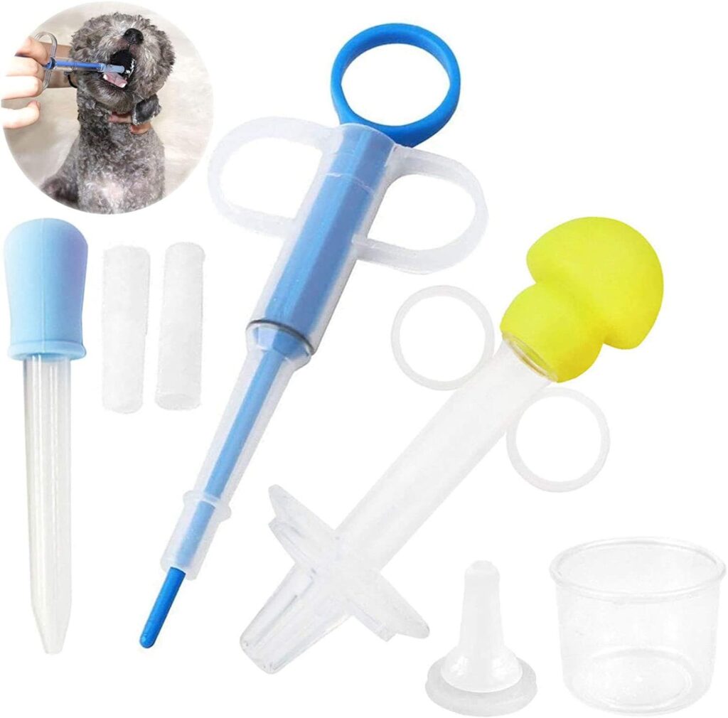 ペットに液体や固体を飲ませるための道具が、7点もセットになっています。
