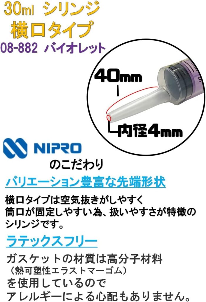 色付きで目盛りが見やすく、清潔な個包装で、なにより口コミ評価がとても高いので、「シリンジ」をさがしている方でとくべつこだわりのない場合は、こちらを選んでまず失敗はありません。