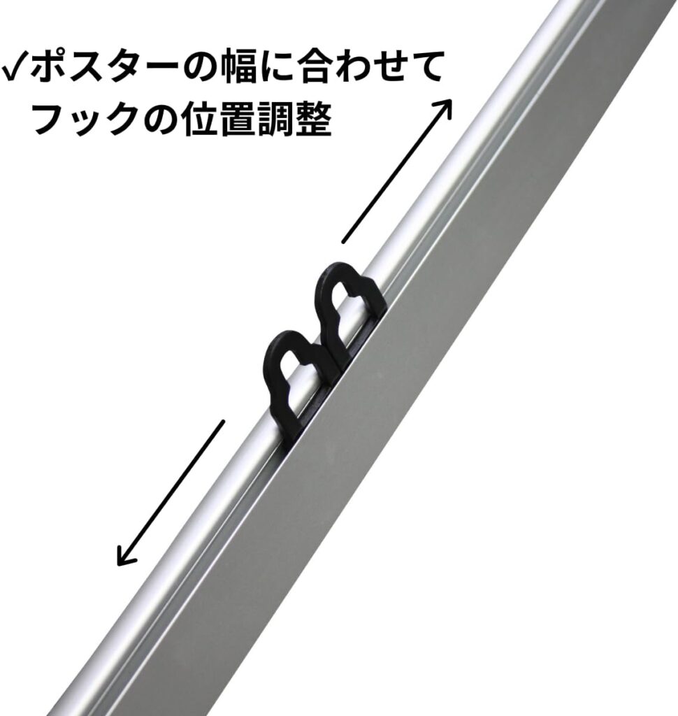 また、フックの位置を自由に調整できるので、ポスターの大きさや吊るす位置に合わせやすいです。