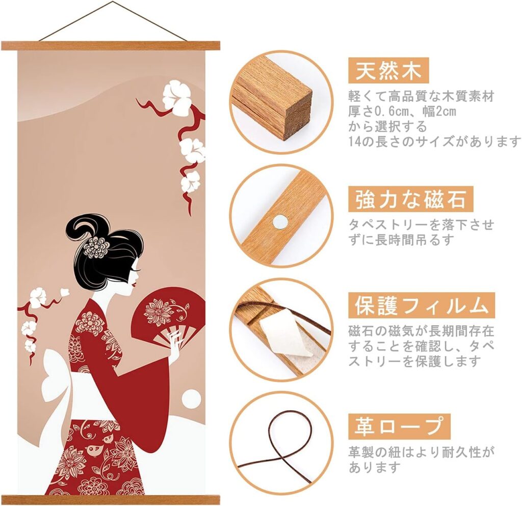 使い方が簡単で、タペストリーを傷つける心配もなく、なにより口コミ評価がとても高いので、「タペストリー棒」をさがしている方でとくべつこだわりのない場合は、こちらを選んでまず失敗はありません。