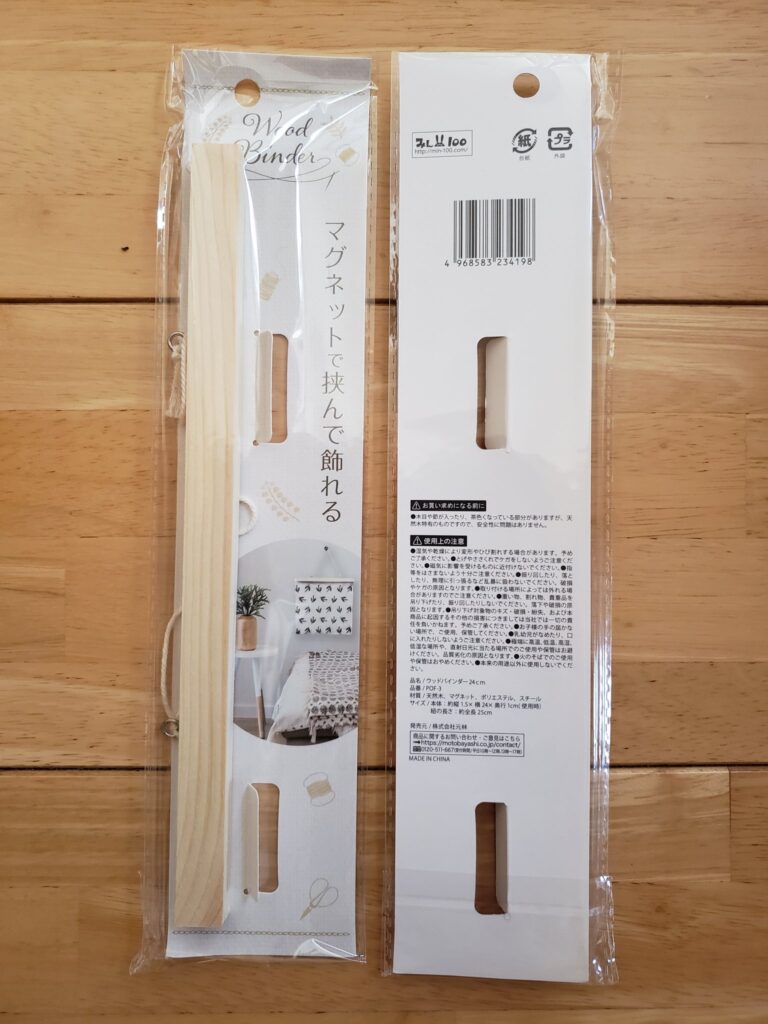 セリア(100均)では、『ウッドバインダー』という「タペストリー棒」が販売されています。