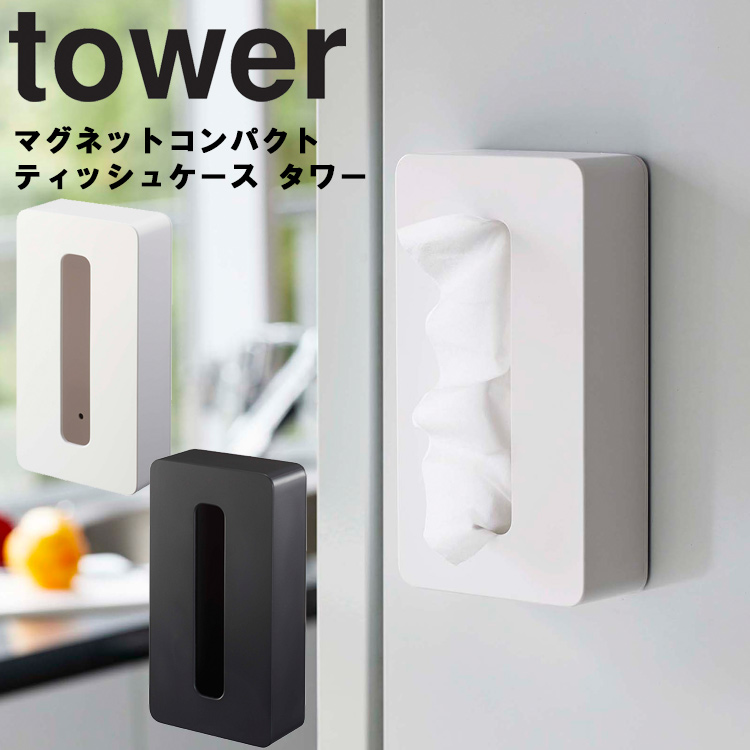 3.山崎実業 tower(タワー) マグネットコンパクトティッシュケース 11.5×5.5×21.5cm