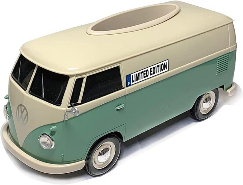 ミニカーの老舗により、忠実に再現された1/16スケールのフォルクスワーゲンバスが、そのままティッシュホルダーになっています。