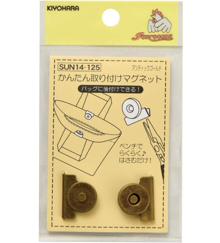ただ、ダイソー(100均)では、バッグの口閉じに便利な『マグネットボタン』が販売されています。