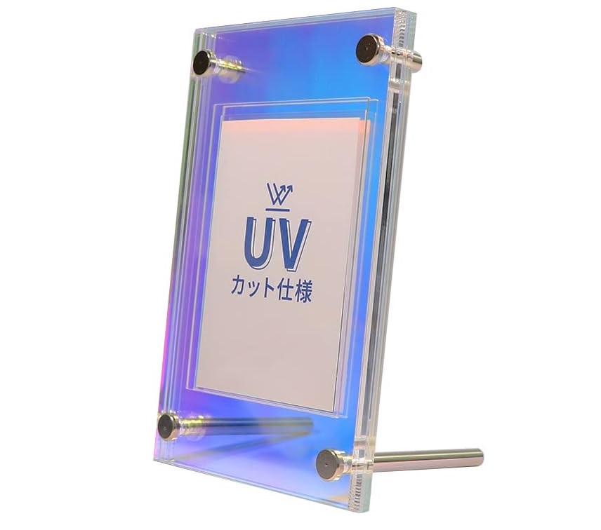 両面が透明度の高いアクリル素材でつくられているので、トレカのデザインがはっきりと見えます。