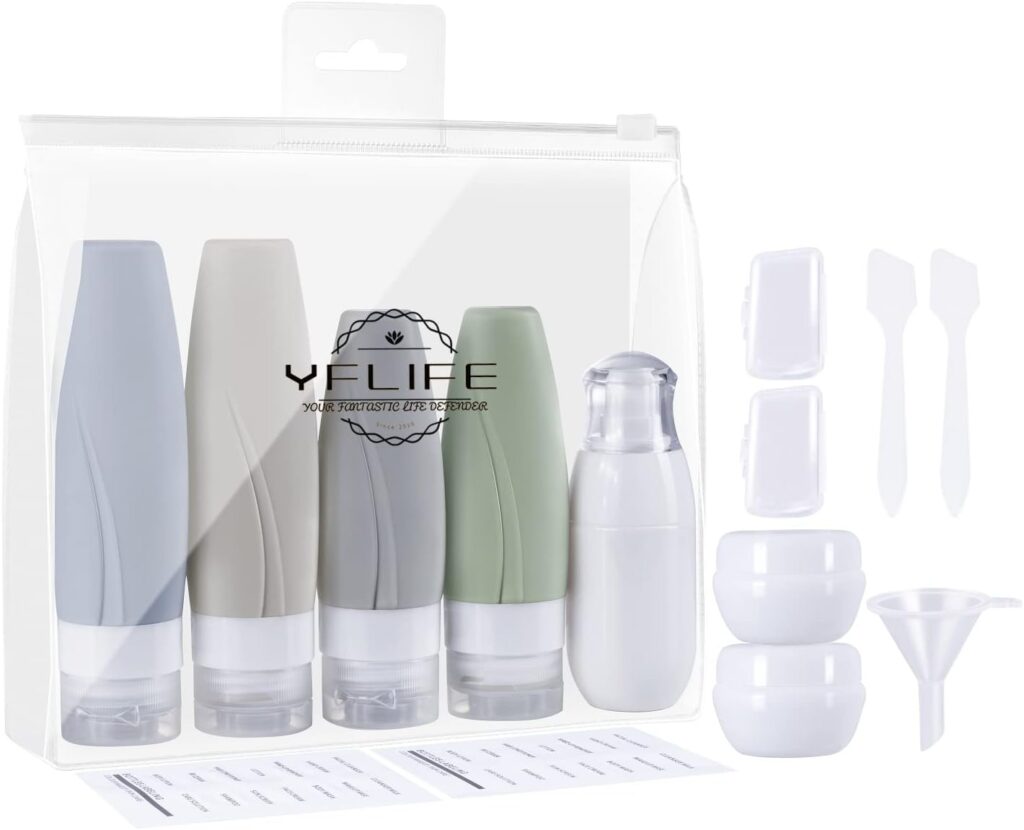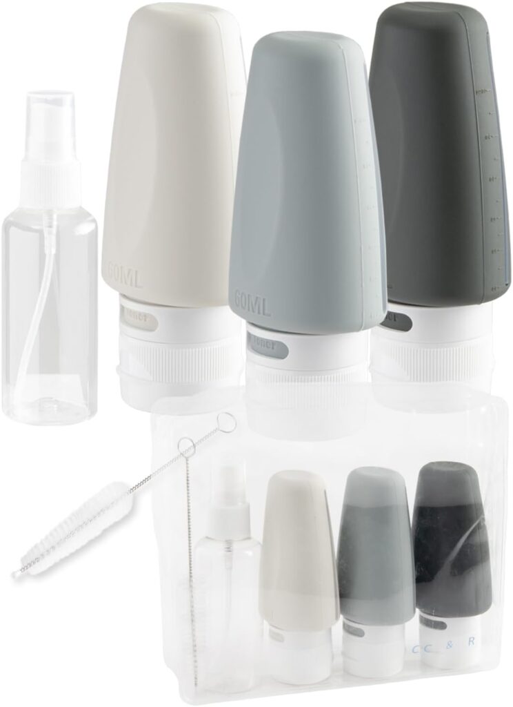 ポンプボトルやスプレーボトル、クリームケースなどがセットになっています。