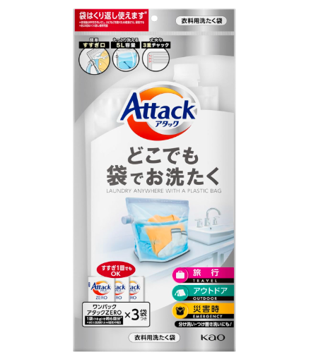 ホテルに洗濯機がなく、シンクで洗うのも難しい時にとても役に立ちます。