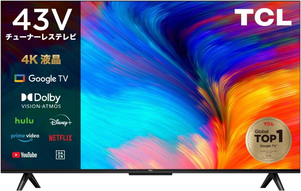 7.【4K】TCL チューナーレススマートテレビ e angle select GoogleTV搭載(43V型・50V型)