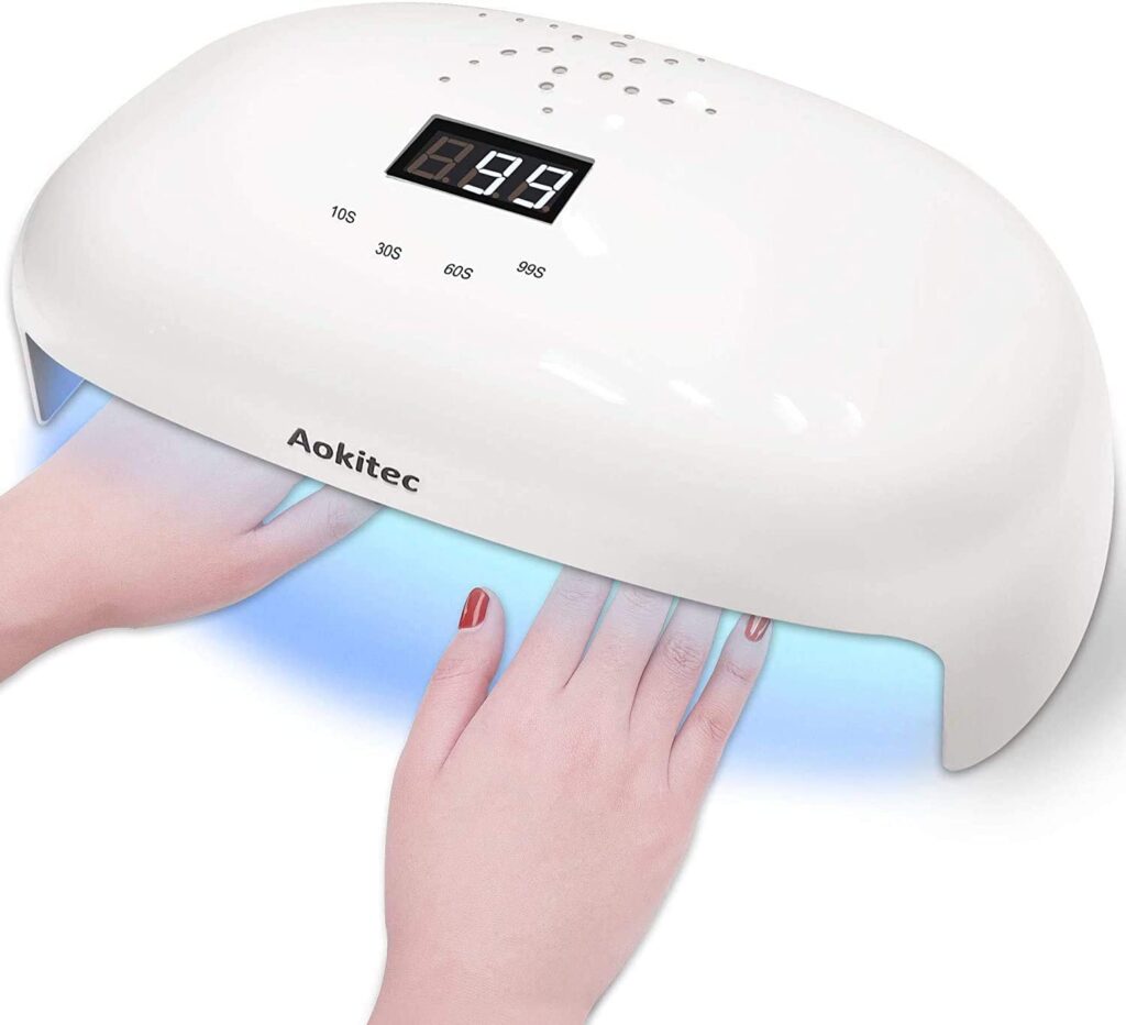 両手を一度に照射できる幅広なものや、コンパクトで持ち運びに適したもの、人感センサー付きのものなど、さまざまな「UVライト(ネイルドライヤー)」が販売されています。