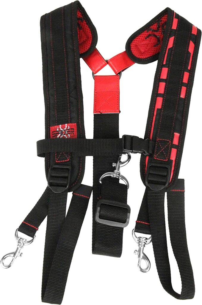 腰道具の重みでずり下がらないものや、アクセントカラーがおしゃれなもの、肩に食い込みにくいものなど、さまざまな「腰袋サスペンダー」が展開されています。