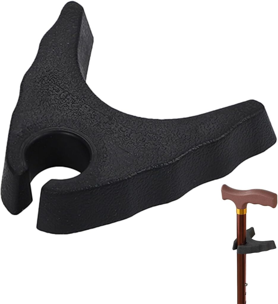 柔軟性が高いゴム素材でつくられていて、杖の持ち手を置くだけで簡単に固定できます。