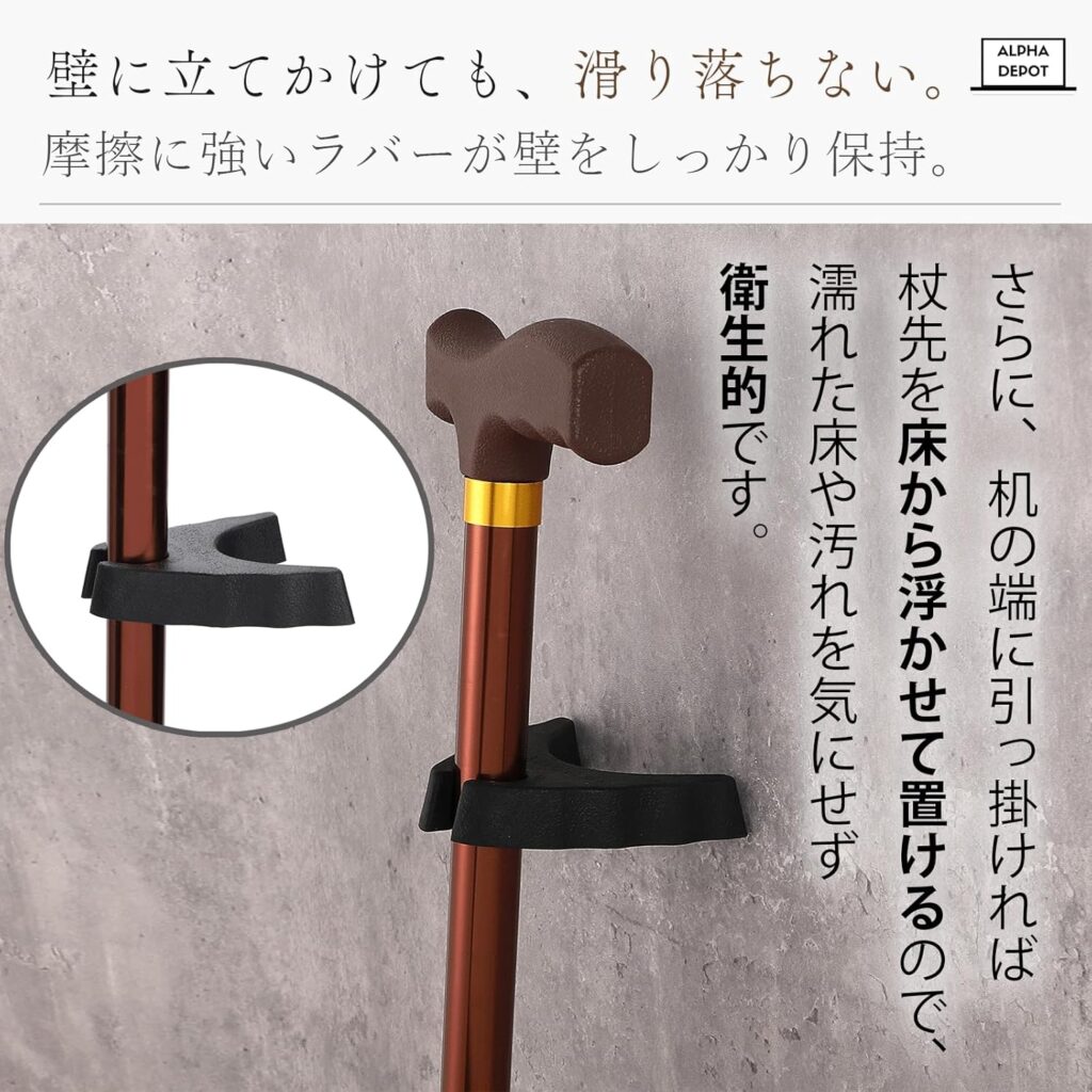 と、置くだけで簡単に杖を固定でき、必要な場所に移動できると好評です。