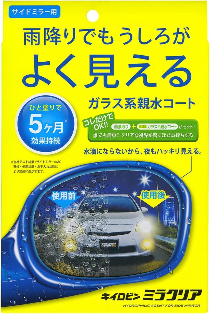 そんな危険を防ぐのに役立つ「サイドミラー用撥水剤」が各メーカーから販売されています。