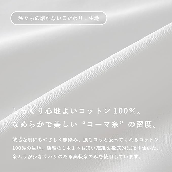 なめらかなコーマ糸が使用された綿100%の生地で、肌あたりがやさしいです。