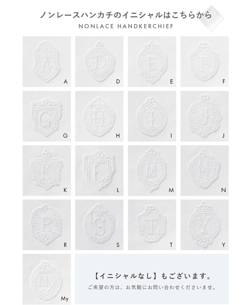 3.hugge handkerchief(ハグ ハンカチーフ) イニシャル ノンレース ブライダルハンカチ