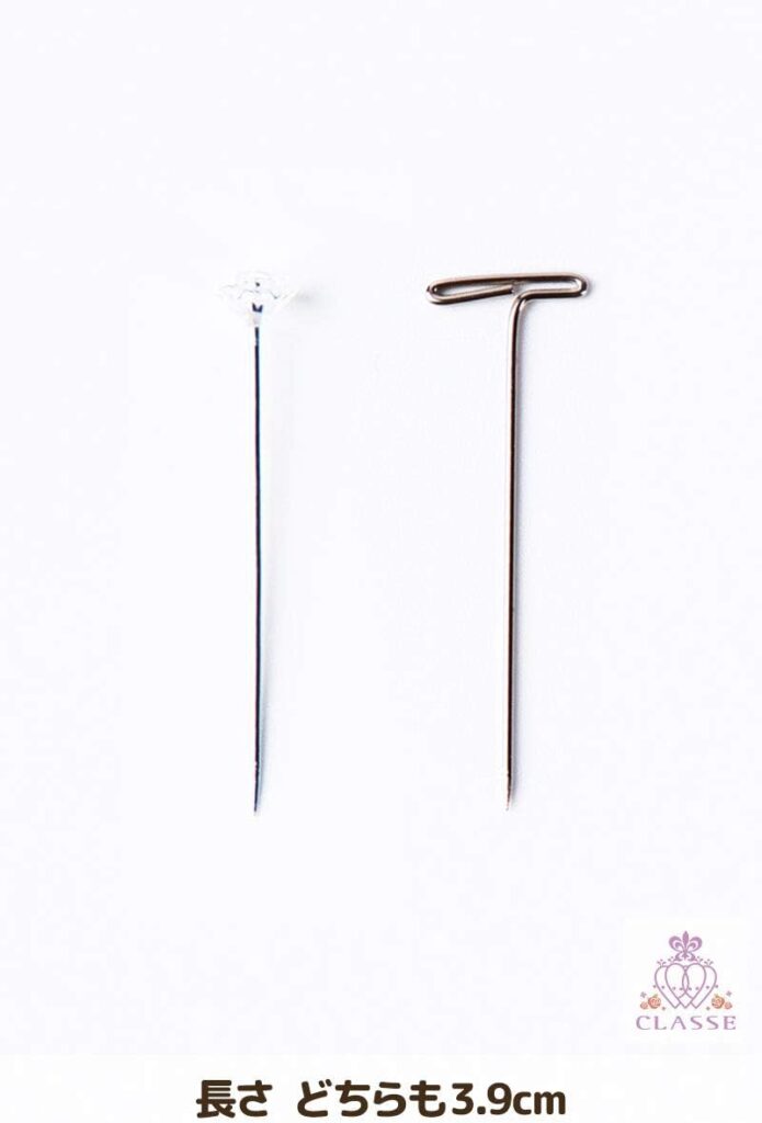 ネキンヘッドとウィッグを固定するためのピンで、T字型とダイヤ型が各10本ずつセットになっています。
