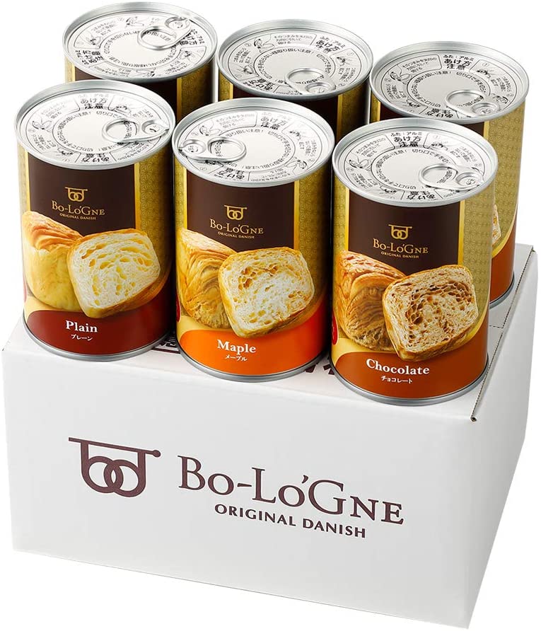 「プレーン」「メープル」「チョコレート」の3つの味のパンが、それぞれ2缶ずつ入っています。