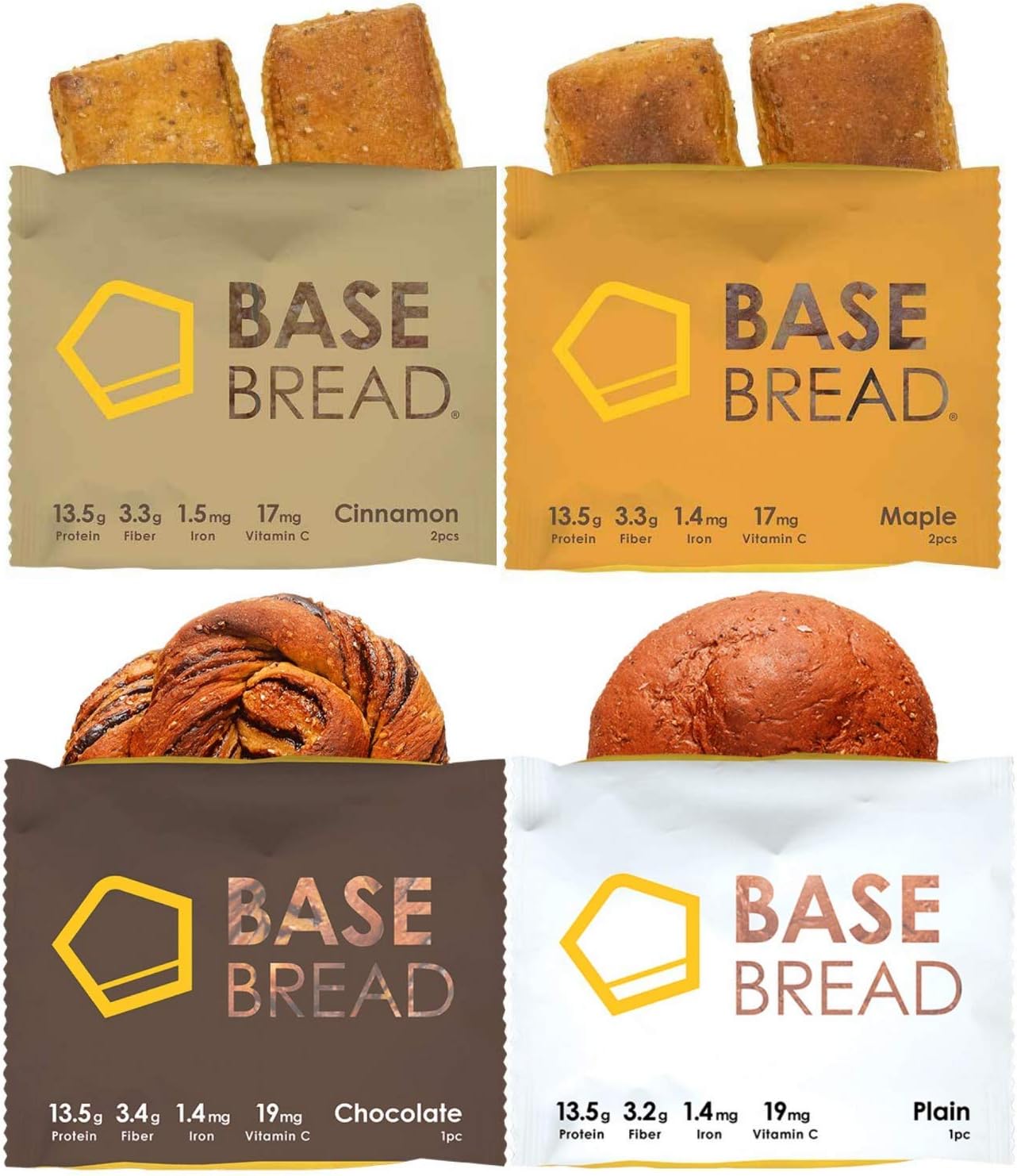 ②【ベストセラー1位(ロールパン・バンズカテゴリ)】BASE BREAD ベースブレッド 4種 (プレーン4袋・チョコレート4袋・メープル4袋・シナモン4袋) 16袋セット