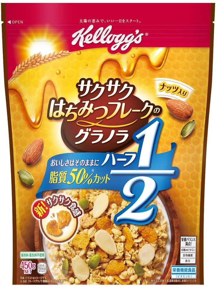 最後は、ケロッグより販売されている「サクサクはちみつフレークのグラノラ ハーフ」。