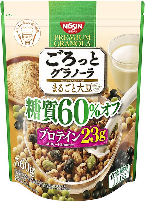 1番のおすすめは、「日清シスコ ごろっとグラノーラ 3種のまるごと大豆 糖質60%オフ」。