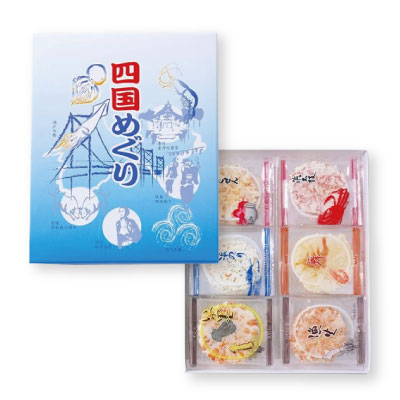 パッケージには、徳島県の阿波踊りうず潮、香川県の瀬戸大橋など、四国4県の観光名所のイラストが描かれています。