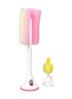 柔らかい素材で哺乳瓶の乳首が破れにくい、乳首洗いスポンジ付きです。