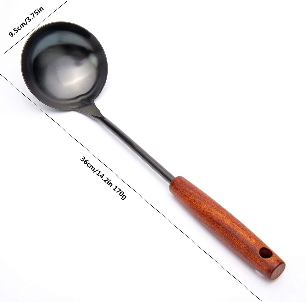 鉄製の本格的な「中華お玉」で、小(150cc)・中(200cc)・大(300cc)の3サイズが展開されています。