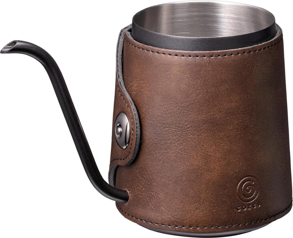 革のカバーで手が熱くならなくて、お湯を注ぐ際は、ちょうど良い湯量でキレイに注げました。