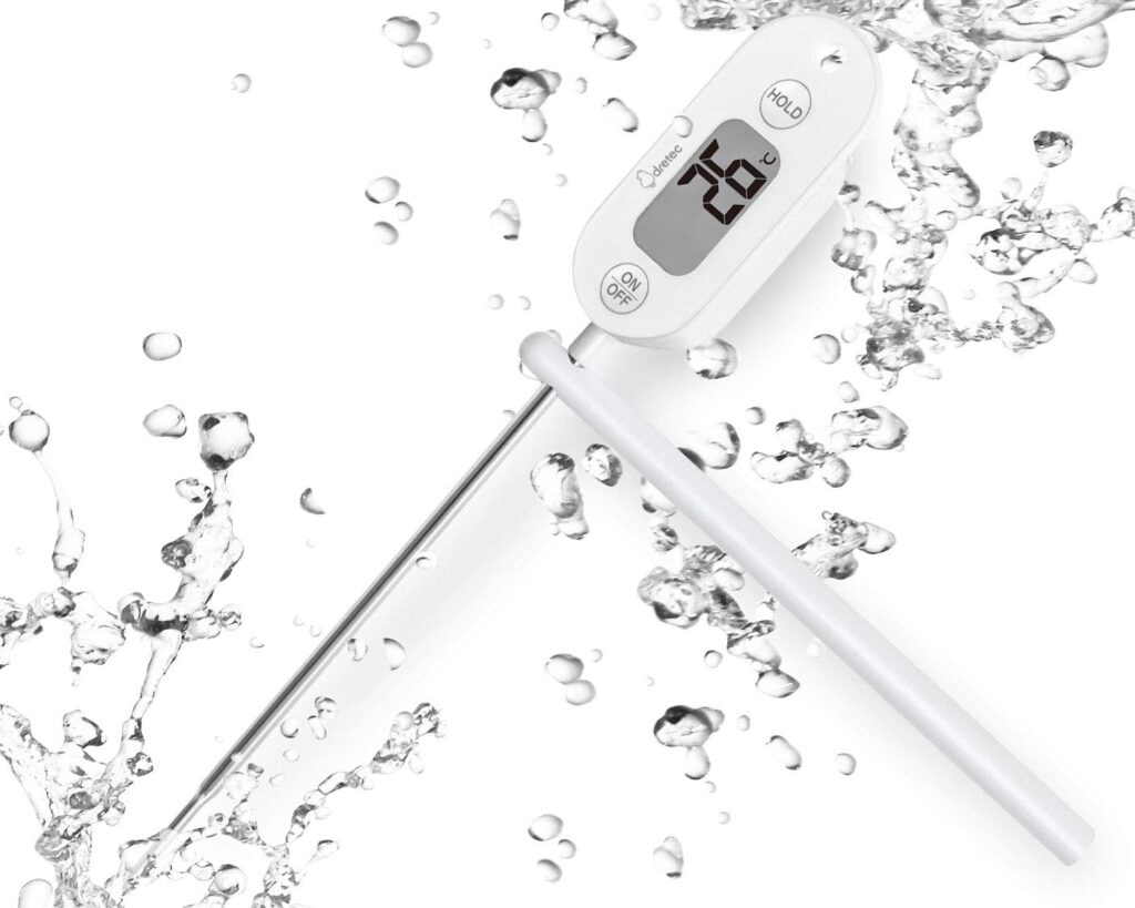 こちらは、濡れた手でも使える“防滴タイプ”の「調理用温度計」です。