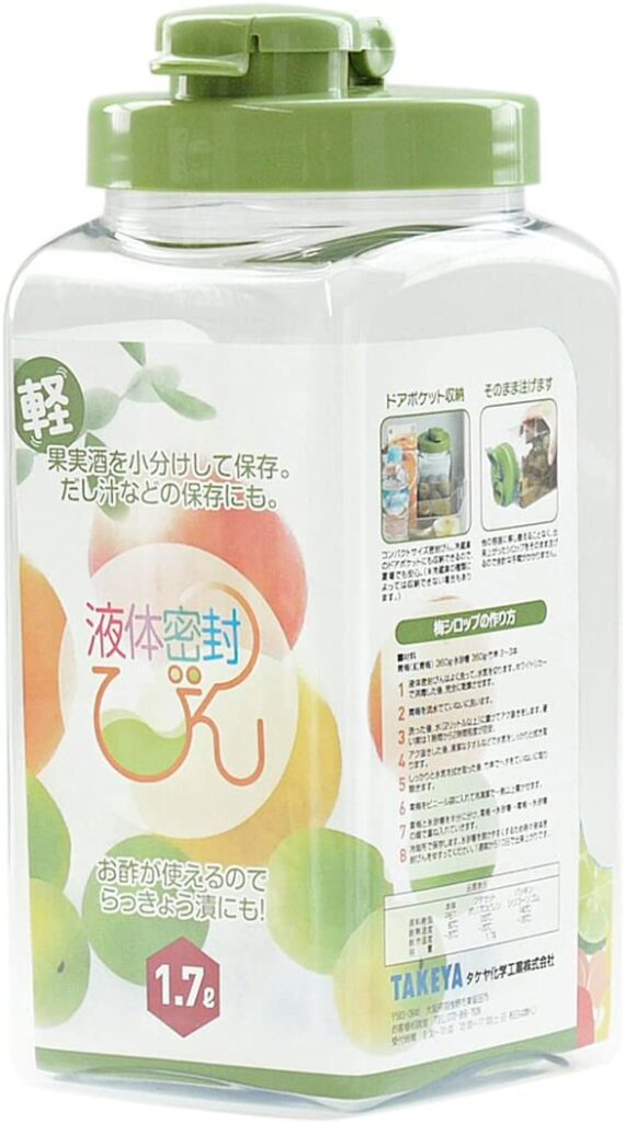 密封性にすぐれた瓶で、空気抜きがしにくいという難点はあるものの、果実酒作りにも使用できます。