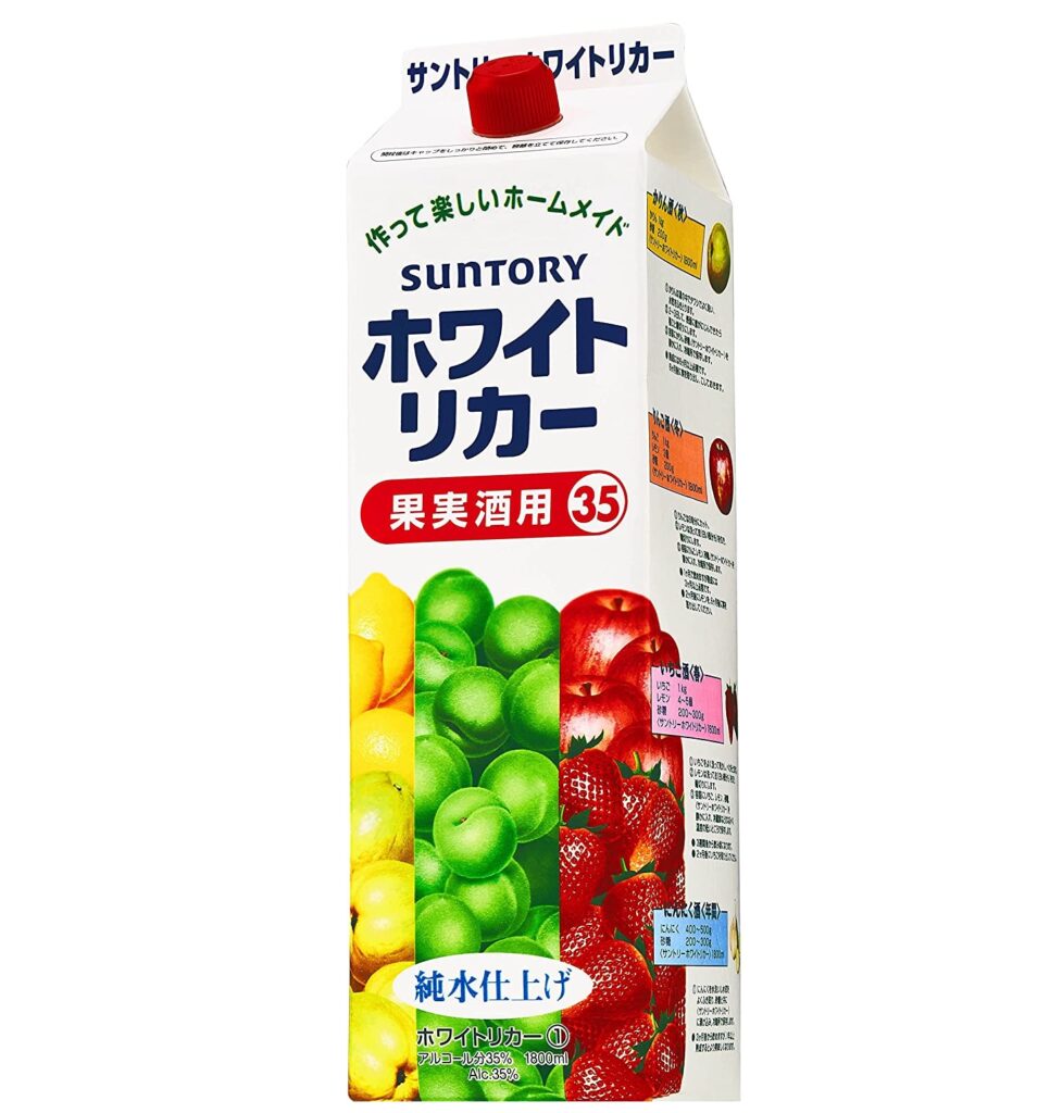 梅と氷砂糖[1kg:¥619]ホワイトリカー[1.8L:¥1,640]をあわせて、簡単に梅酒を作ることができます。