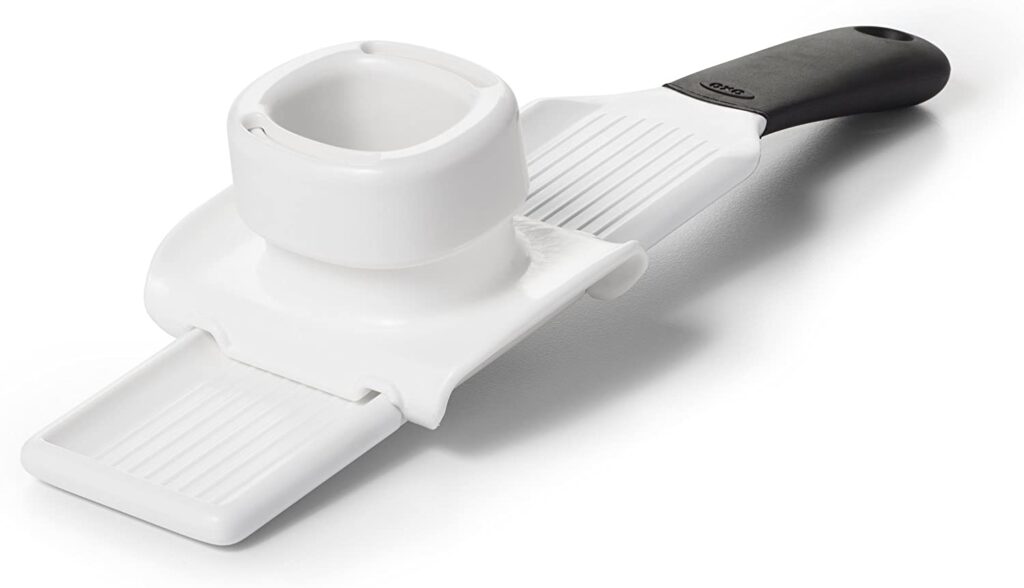 包丁でスライスすると私の腕では厚さが一定にならず、結果的に火の通りに差が出て苦くなったりカリッと仕上がらなかったのですが、厚さが均等でうまく仕上がるようになりました。