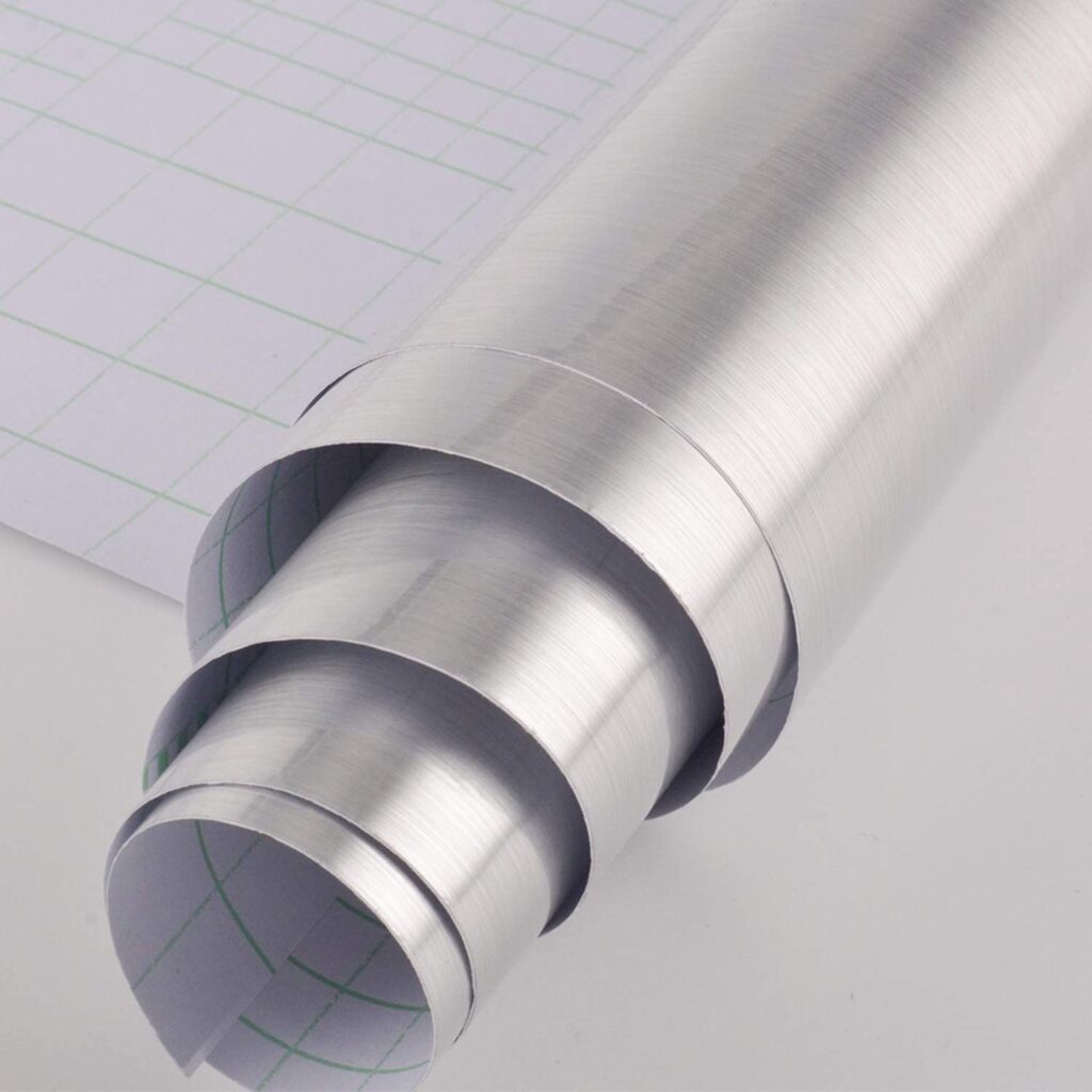 さらに、シール貼り専用道具などを使えば、下画像のようにキッチンの調理台全体にきれいに貼り付けることもできます。