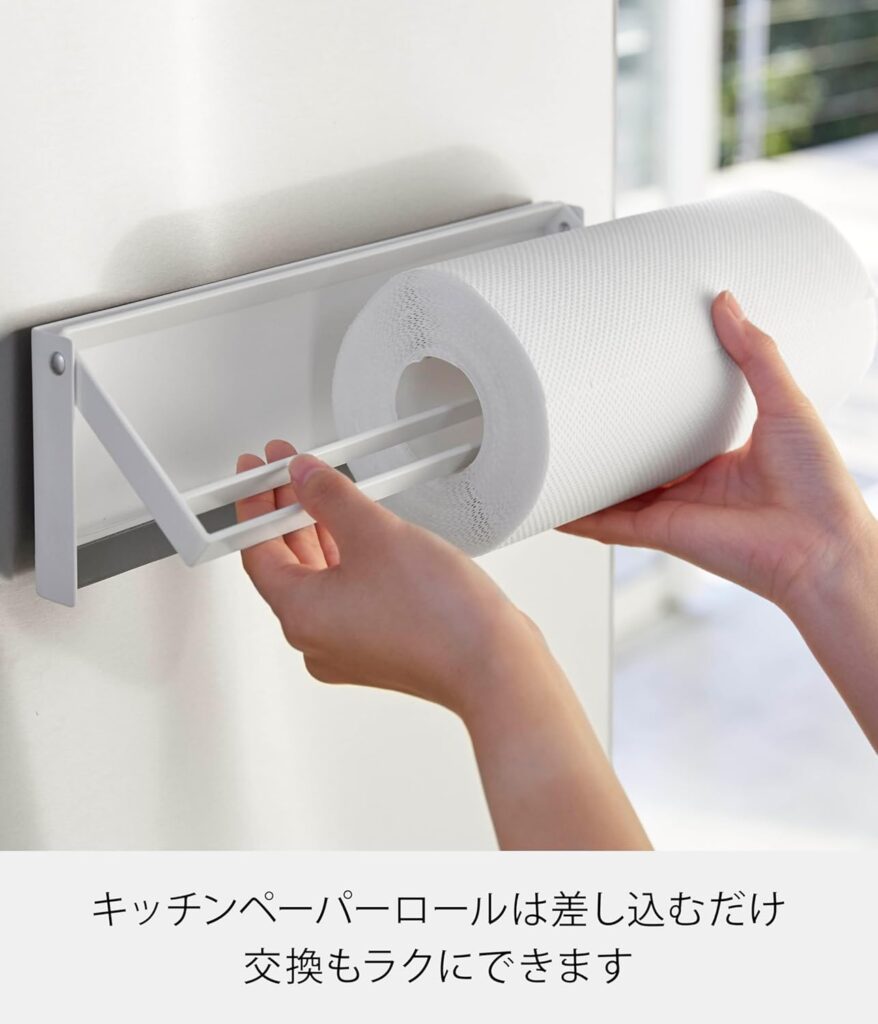 マグネットがしっかり強力なのでぶつかって落ちることもなさそうですし左右両方から支えるのでペーパーが外れることもなく快適に使えると思います