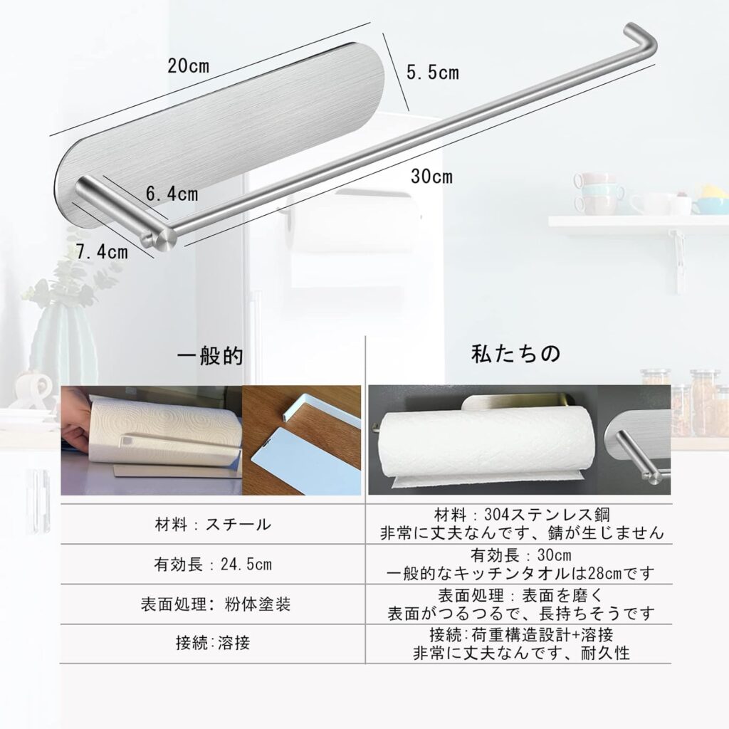 海外製の大きなキッチンペーパーが取り付けたくて購入しました。