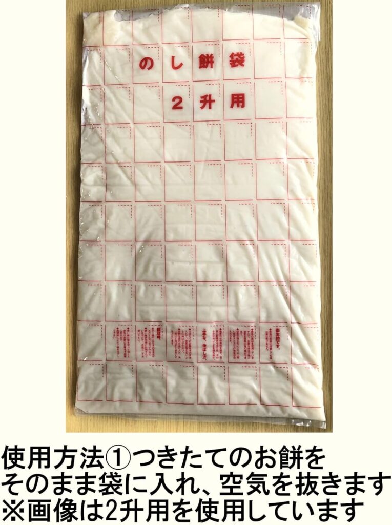 使い方は、つきたてのお餅を入れて、袋の上から伸ばします。