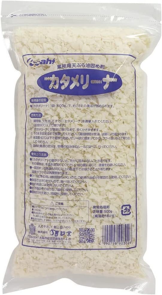 こちらも、本品1袋(500g)で約18Lの油を固めることができます。