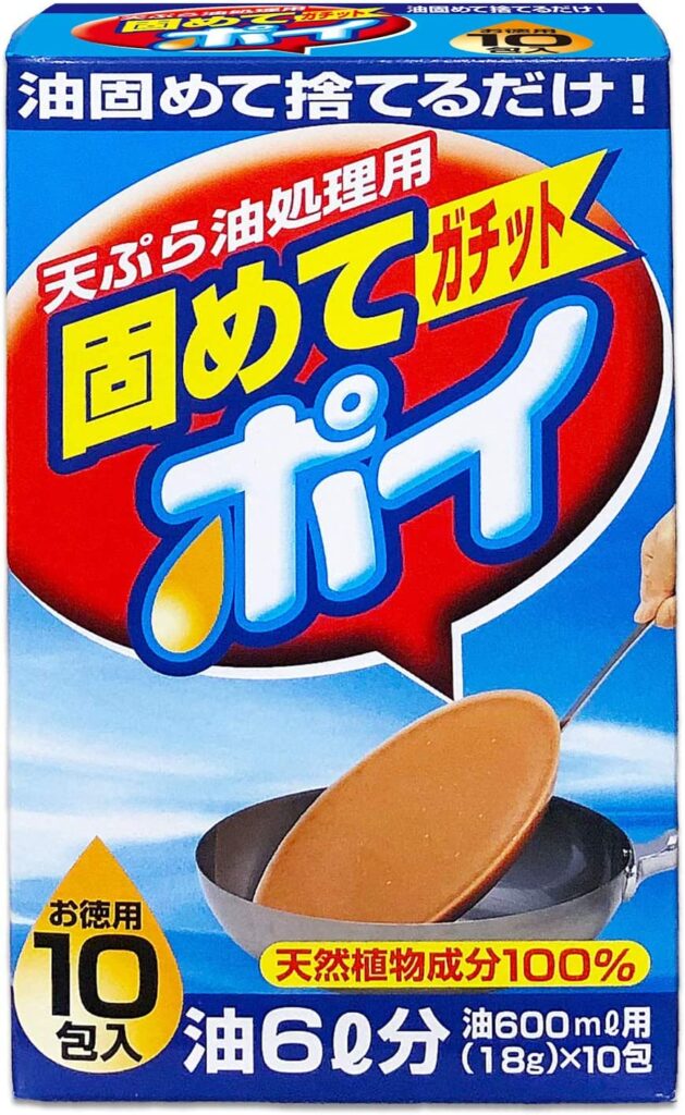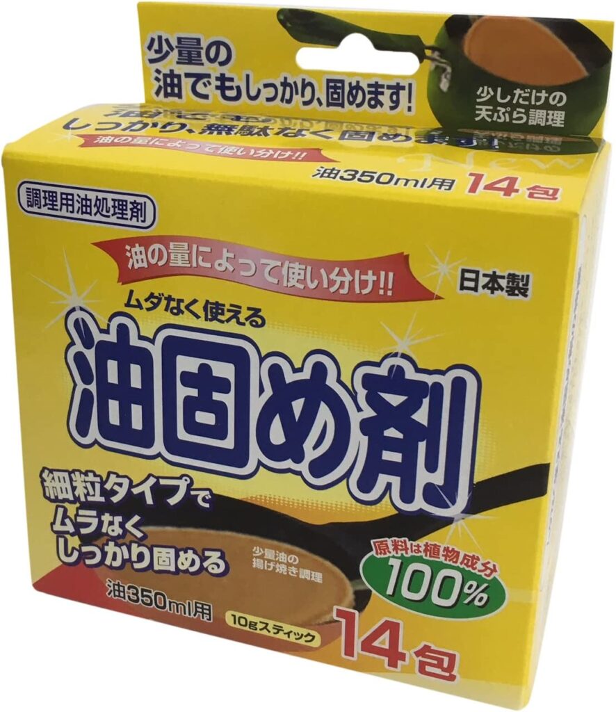 揚げ物で使用した油や天ぷら油を固め、そのまま捨てることができる「油凝固剤」。