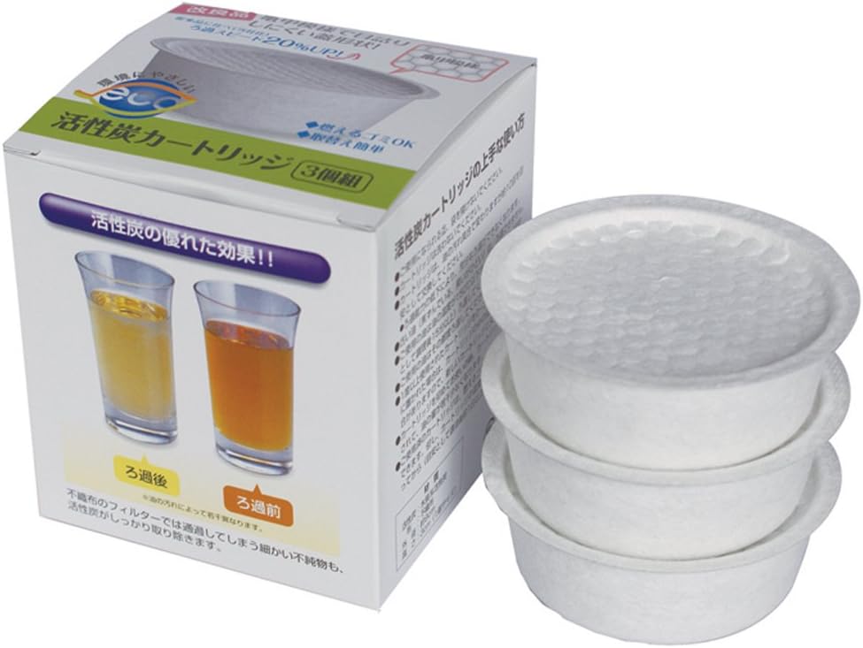こちらも活性炭カートリッジを買い換える必要がありますが、コストパフォーマンスを考えるとサイズの合うオダジマ製のカートリッジ(目安10回ぶん×3P:¥1,520)がおすすめ。