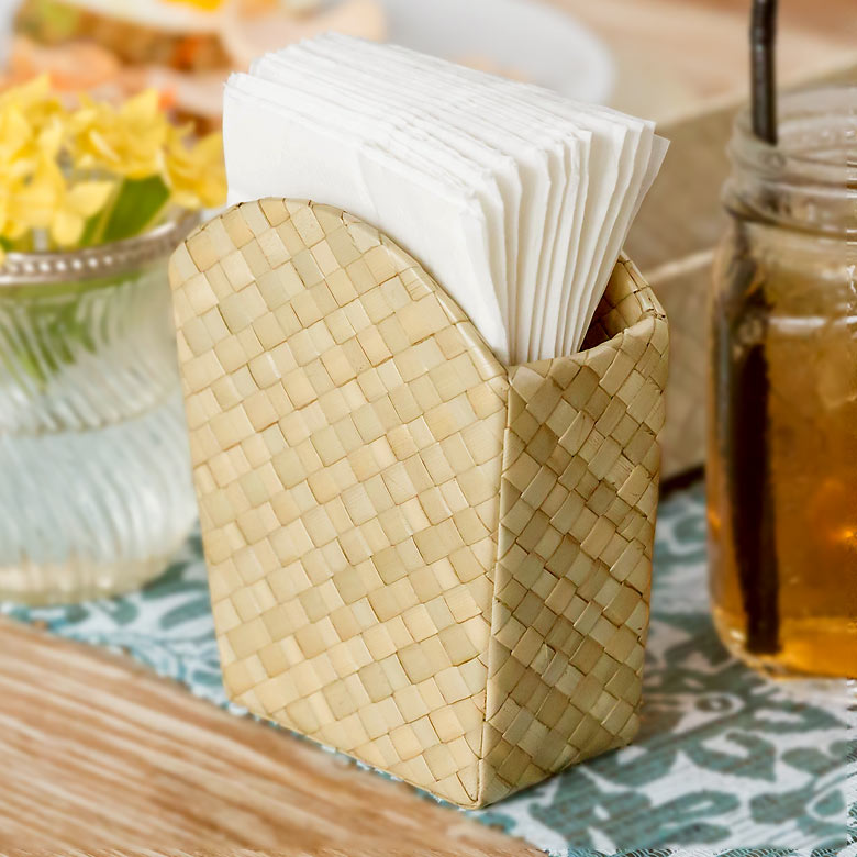 こちらは、バリ雑貨でも人気の〝パンダン〟という植物の葉で編まれた「紙ナプキンホルダー」。