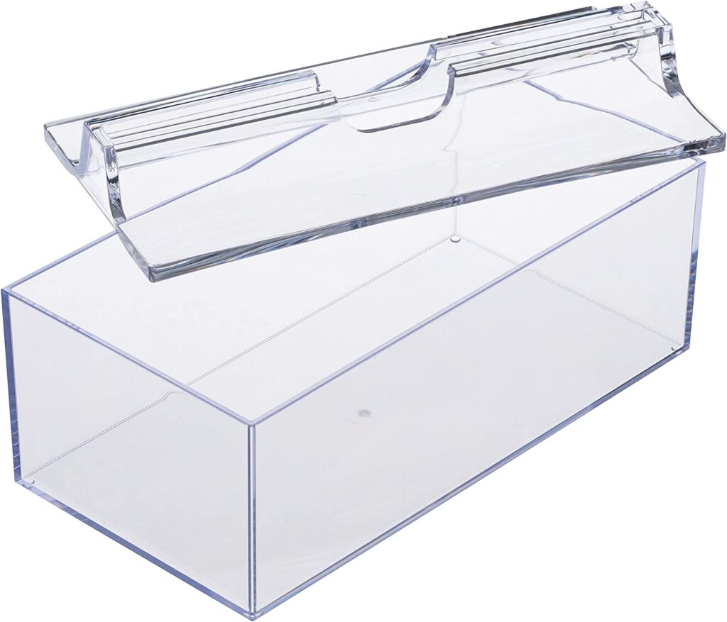 無印良品では、『重なるアクリルボックス 中』という製品が販売されていて、こちらを「ペーパータオルケース」として使用しているという例が見つかりました。