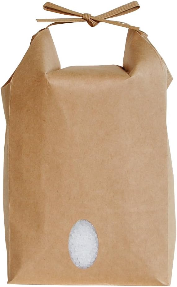 無地のクラフト紙で、中の米が見える透明窓が備わっています。