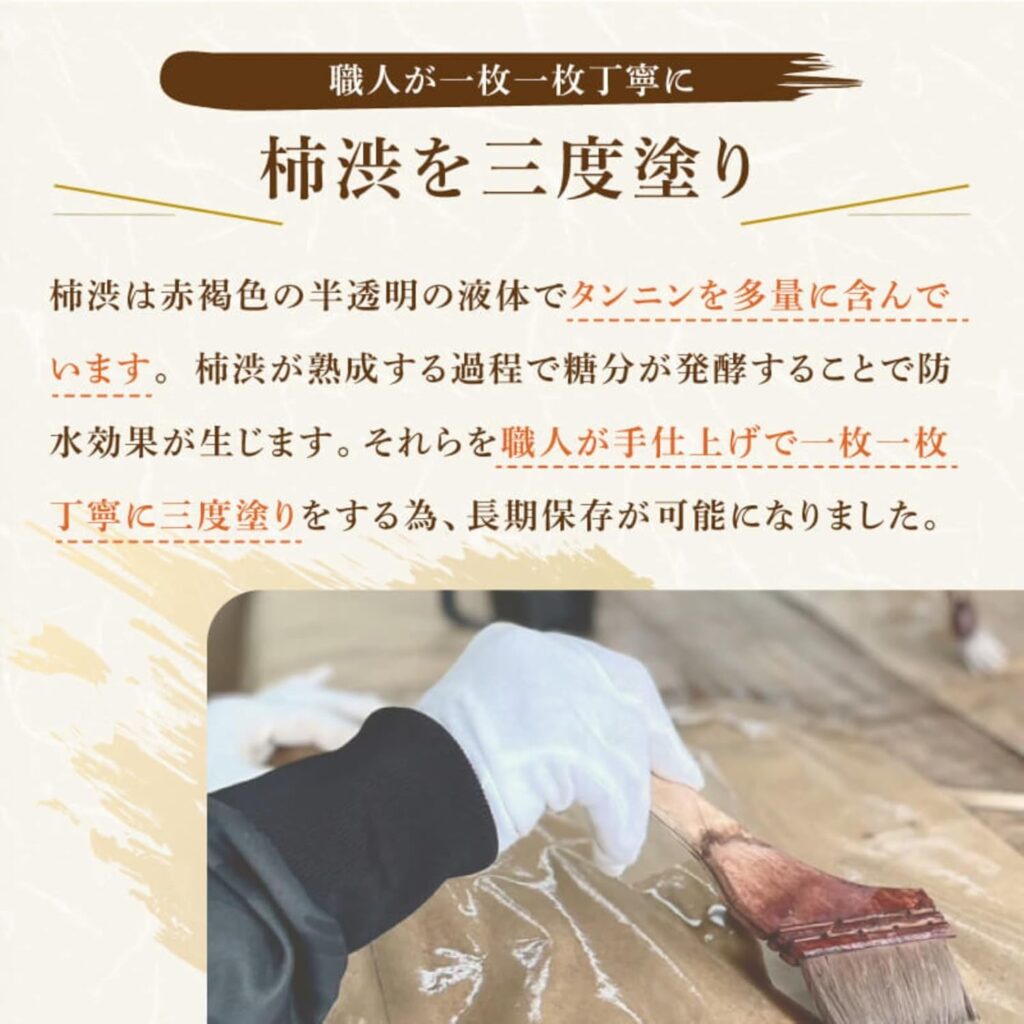職人の手作業で、天然の柿渋液が三度も塗り重ねられています