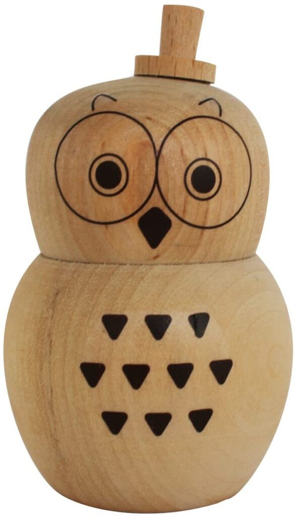 ふくろうの首をくるくる回すことで、簡単に開閉できます。