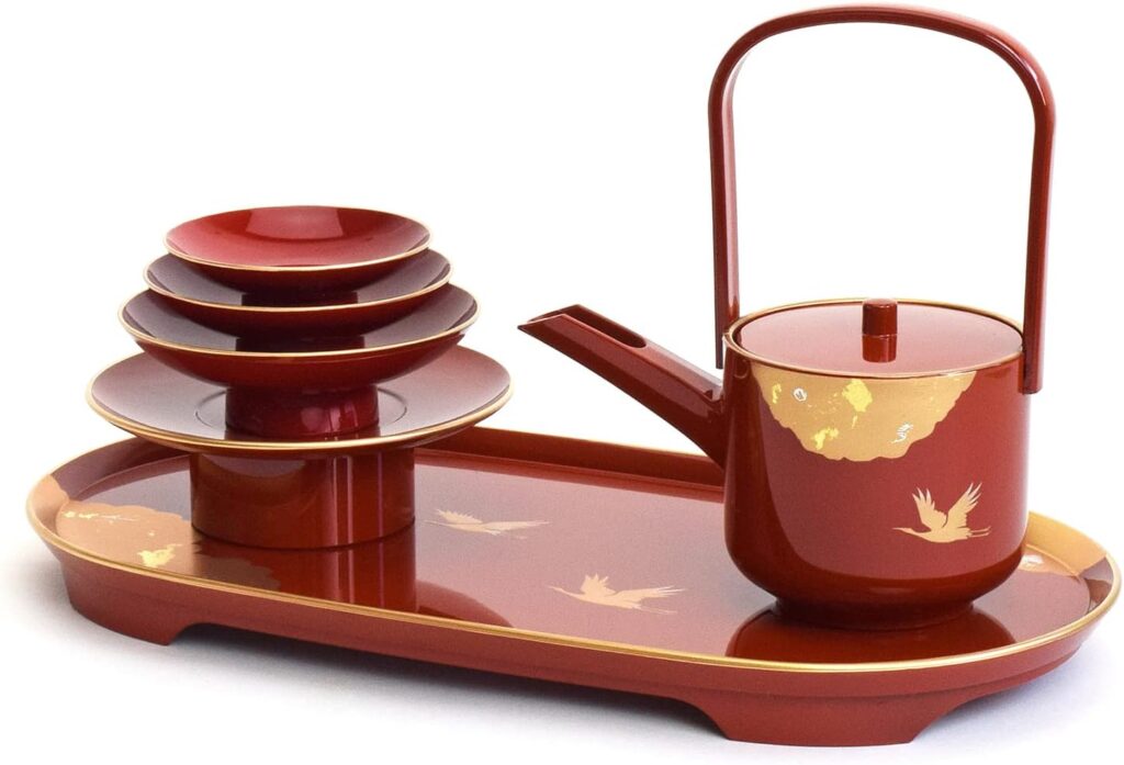 また、屠蘇台や銚子には鶴の模様が描かれていて、お正月のめでたい雰囲気にぴったりです。
