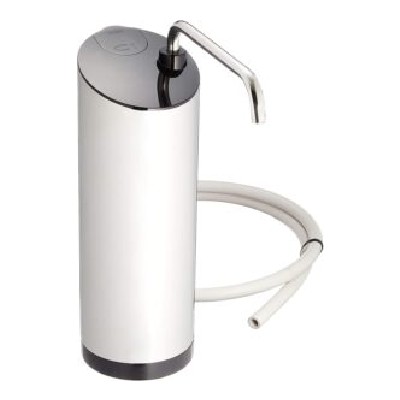 - シンクの上などに置いて使うタイプの浄水器。蛇口と装置をホースでつないで使います。
