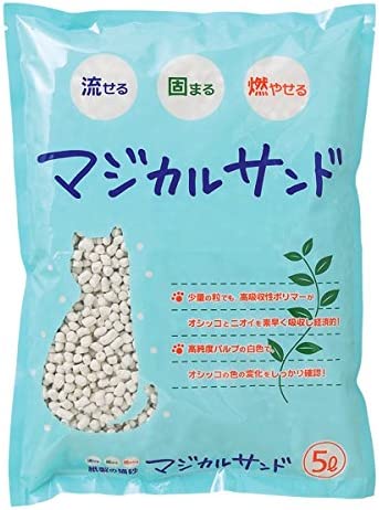続いては、軽くて吸収力が高い「トイレに流せる猫砂」。