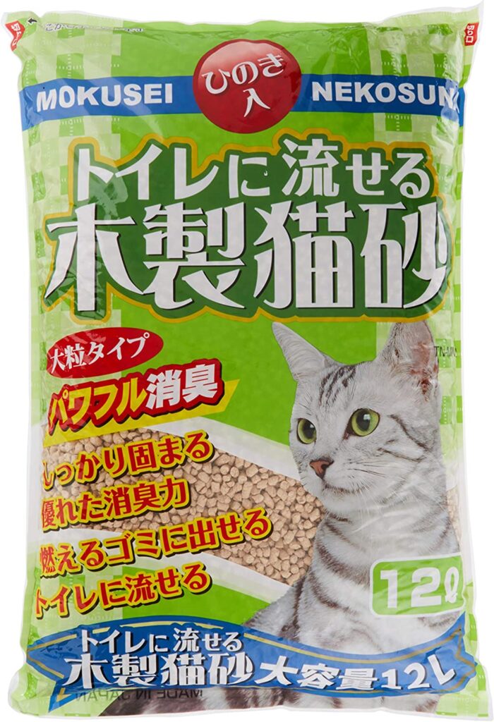 上でもご紹介した「常陸化工 トイレに流せる木製猫砂 12L」と同じ常陸化工から販売されています。