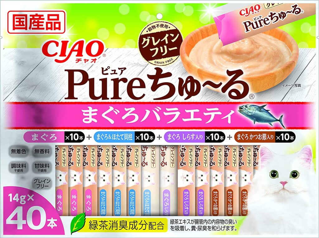 1.【国産】CIAO Pureちゅ~る まぐろバラエティ 14g×40本