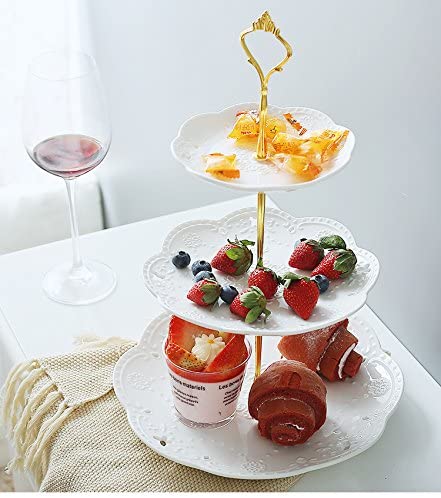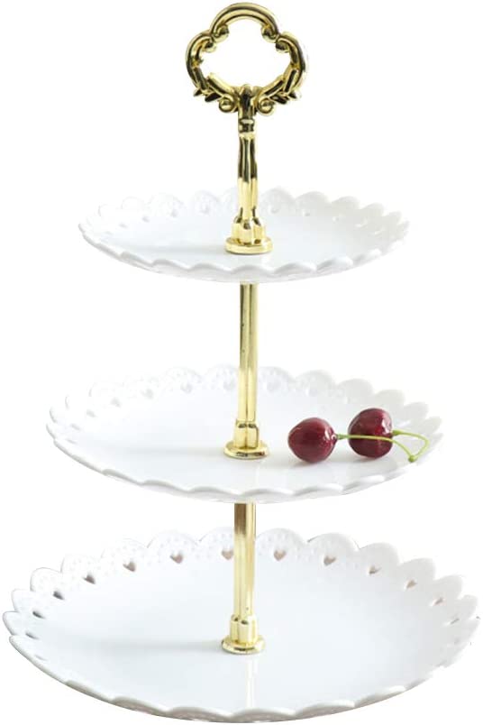 3.YBK Tech 北欧の風ケーキスタンド 強化磁器+ゴールデンロッド 3段